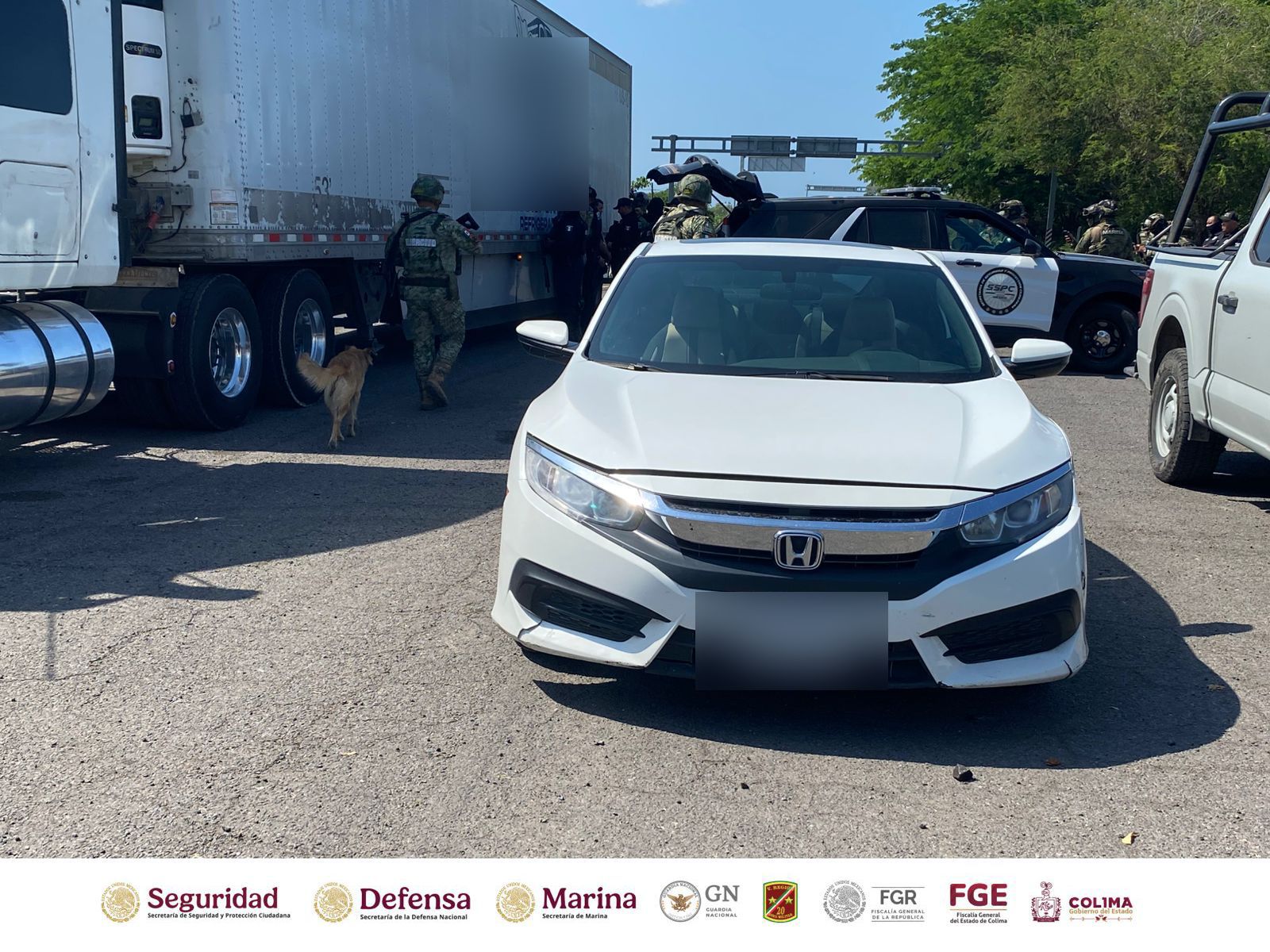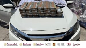 La Mesa de Coordinación Estatal para la Construcción de la Paz y la Seguridad en Colima, informa que elementos del Ejército Mexicano en coordinación con personal de la Secretaría de Marina y de la Secretaría de Seguridad y Protección Ciudadana federal y estatal, se aseguró un cargamento con más de 65 kilogramos de droga con las características de cocaína, en el filtro de seguridad instalado en Boca de Apiza, en el municipio de Tecomán.